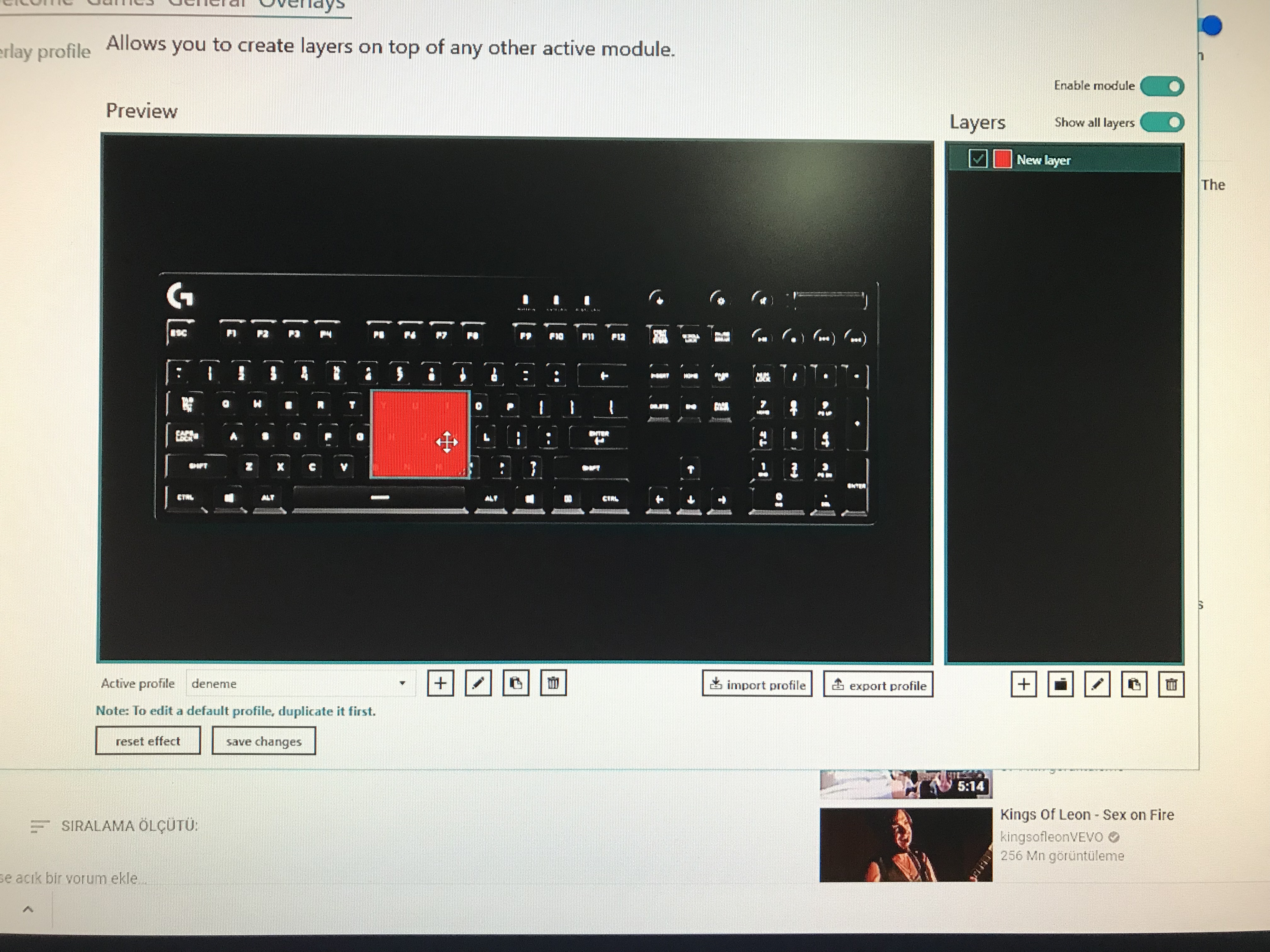 Logitech gaming keyboard profiles for various applications.
